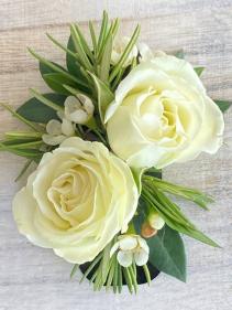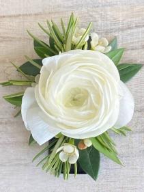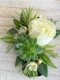 A new kind of boutonniere that will stick directly to your shirt No pin needed. It comes with the flower of your choice and greens. NO Ribbon